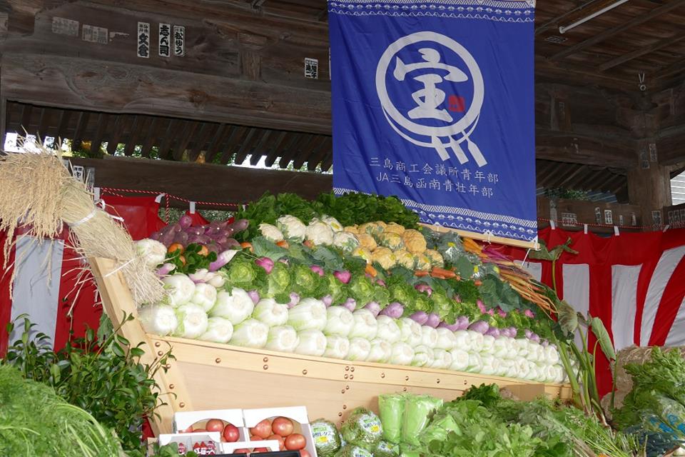 ●22日、滝川神社での「禊」(みそぎ=滝行)で身を清めるところから始まり、JA三島函南の若手農家さんが丹精込めて育て献上してくれた三島野菜をみこしに乗せての「禊行列」、その野菜を船に盛った「宝船」の奉納と続きます。